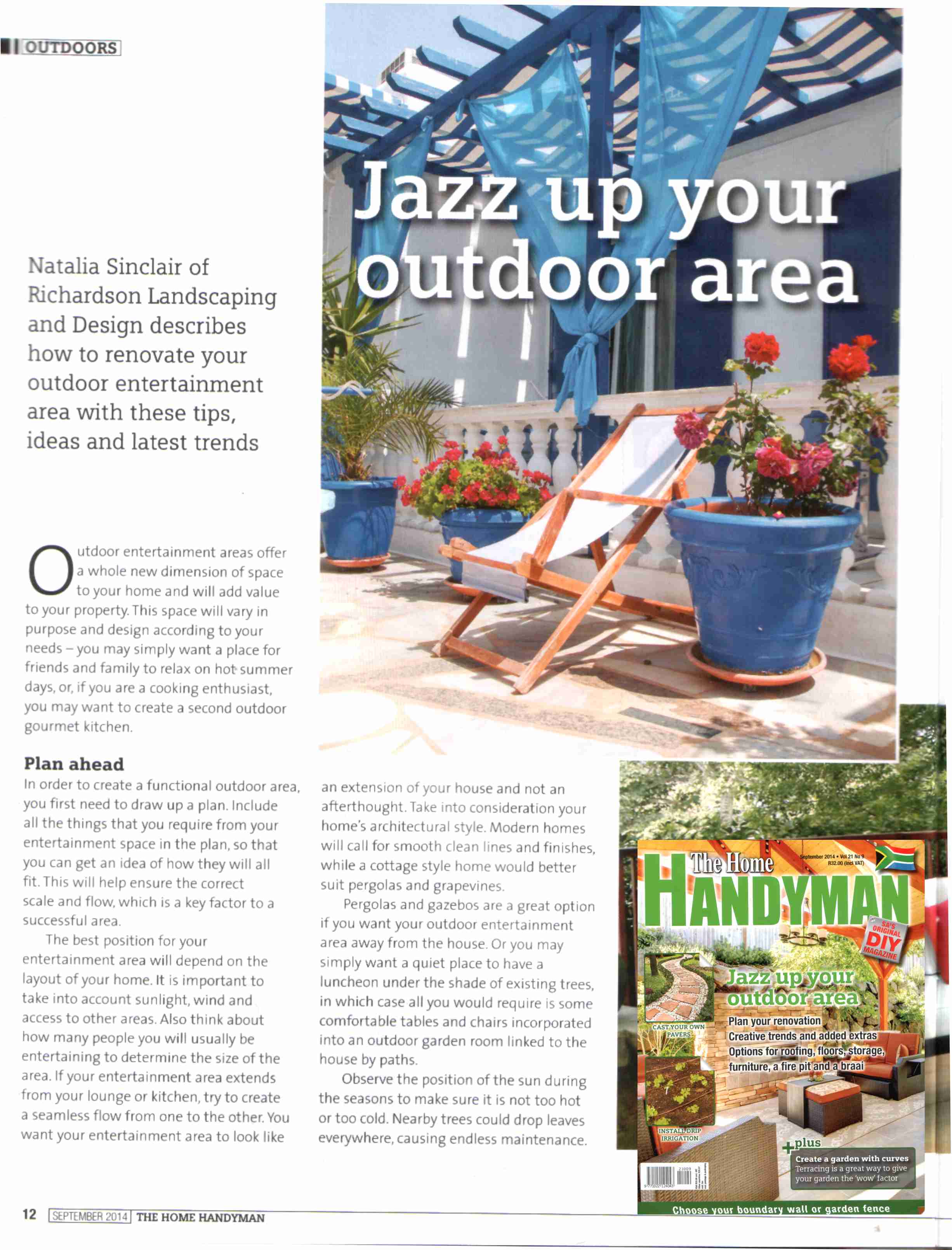 Natalia Richardson’s article ‘Jazz up your outdoor area’ in the handyman magazine September 2014
